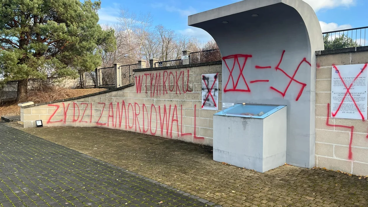 Informacje biłgorajskieAkt wandalizmu na cmentarzu w Biłgoraju. Na ścianie pamięci przy ulicy Konopnickiej pojawiły się m.in. swastyki i hasła. Najprawdopodobniej nieznani sprawcy zrobili to w nocy: - Hasła wskazują, że nie chodzi o antysemityzm, czy jakieś zatargi polsko-żydowskie, ale to protest przeciwko temu co dzieje się w tej chwili w Strefie Gazy - mówi nam jeden z mieszkańców. Na miejscu od rana pracuje policja. Zdjęcia natychmiast w Nowej Gazecie Biłgorajskiej, w galerii tuż przy tej informacji. Wkrótce więcej szczegółów.