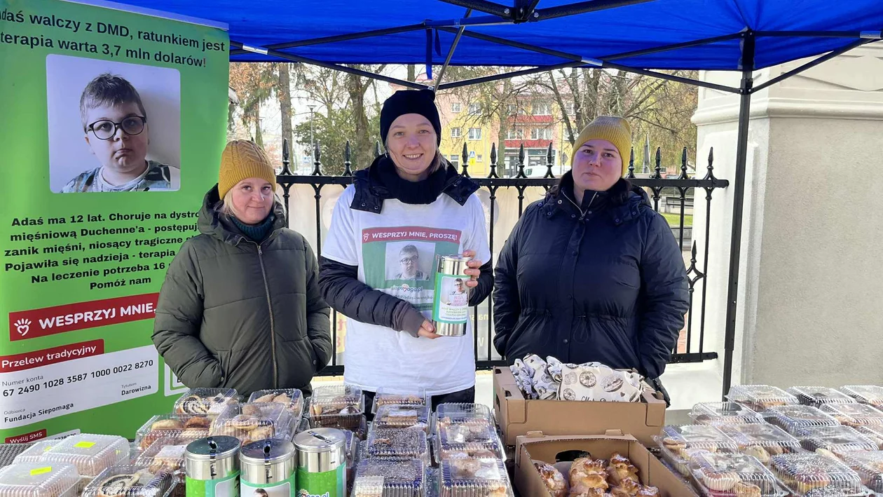 Przy kościele WNMP w Biłgoraju panuje dziś wyjątkowa atmosfera solidarności. Od samego rana wolontariusze stoją przy stoiskach z domowymi wypiekami - serniki, szarlotki, babki, muffinki i wiele innych pyszności, a cały dochód z kiermaszu zostanie przekazany na pomoc 12-letniemu Adasiowi Iwanejko, który walczy z dystrofią mięśniową Duchenne’a.