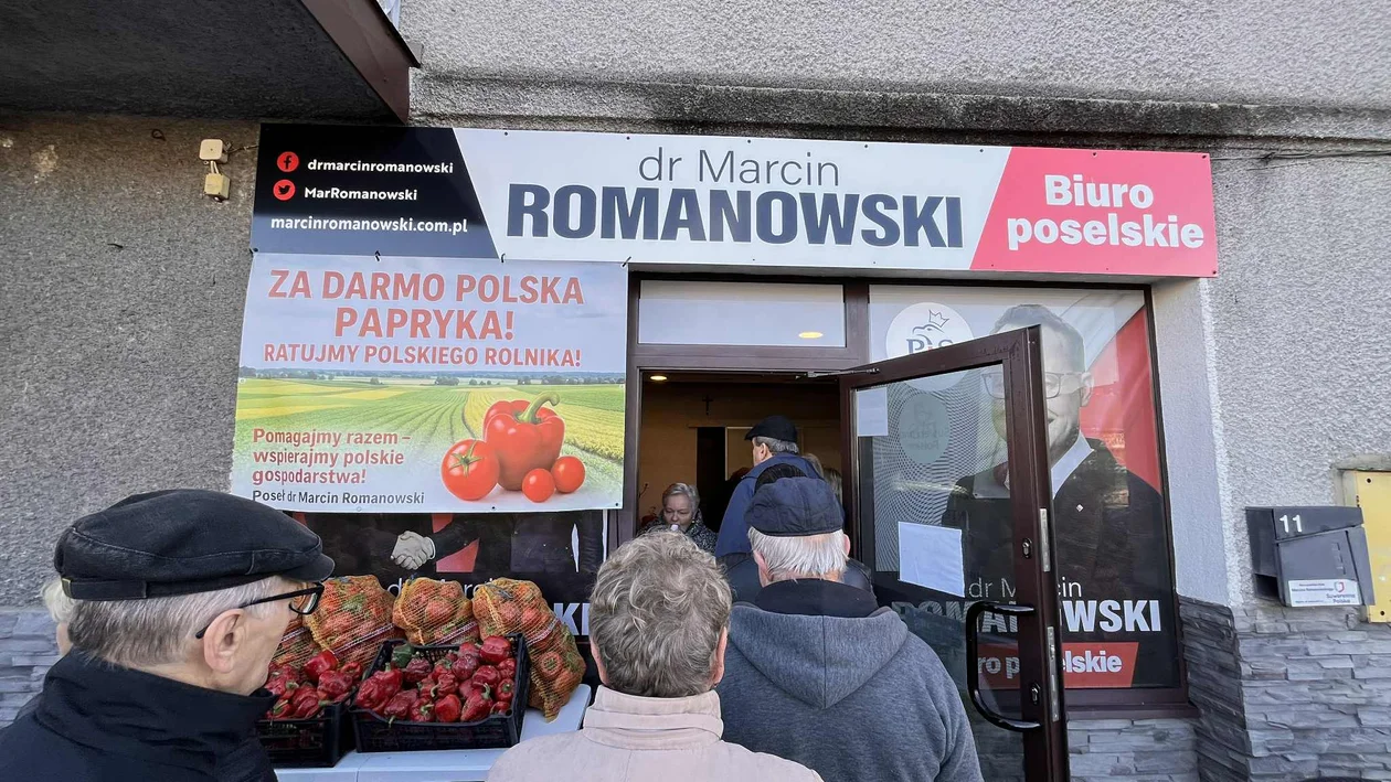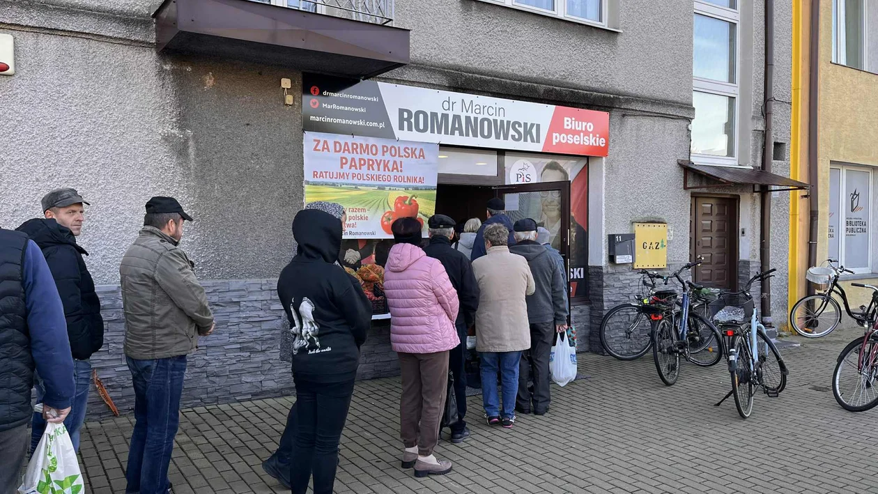 Akcja rozdawania papryki, zorganizowana przez posła Marcina Romanowskiego, już trwa i przyciąga tłumy mieszkańców. Jak poinformował parlamentarzysta, wspólnie z grupą lokalnych przedsiębiorców i mieszkańców powiatu biłgorajskiego kupił ponad tonę papryki prosto od miejscowego rolnika, by przekazać ją mieszkańcom za darmo.