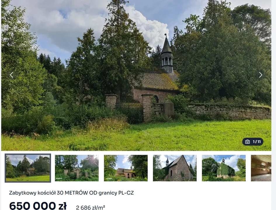- W ogłoszeniu sprzedaży, które pojawiło się na jednym z popularnych portali nieruchomości, podkreślono, że zabytek idealnie spełni rolę „sali bankietowej, weselnej lub konferencyjnej”. Dodano też, że „niezaprzeczalnym atutem jest świetna akustyka budynku, co po adaptacji może uczynić go wyjątkowym obiektem do organizacji wydarzeń muzycznych”. Początkowo cena nieruchomości wynosiła 800 tysięcy złotych, jednak z czasem została obniżona do 650 tysięcy złotych - informuje Wprost.