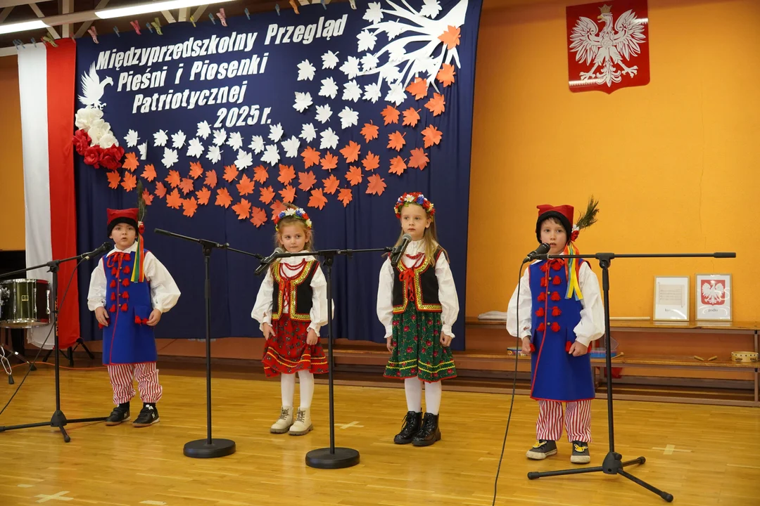 Następnie zgromadzona widownia wysłuchała pieśni o charakterze patriotycznym. Swoje piosenki zaprezentowało 38 uczestników w wieku od 3 do 6 lat. Były to dzieci uczęszczające do: Niepublicznego Przedszkola Specjalnego, Gadu Gadu Punktu Przedszkolno-Terapeutycznego Akson, Przedszkola Integracyjnego Bambini, Akademii Przedszkolaka Publicznego Przedszkola Językowego, Katolickiego Przedszkola im. św. Jana Pawła II oraz oczywiście Przedszkola Publicznego Domek Przedszkolaka.