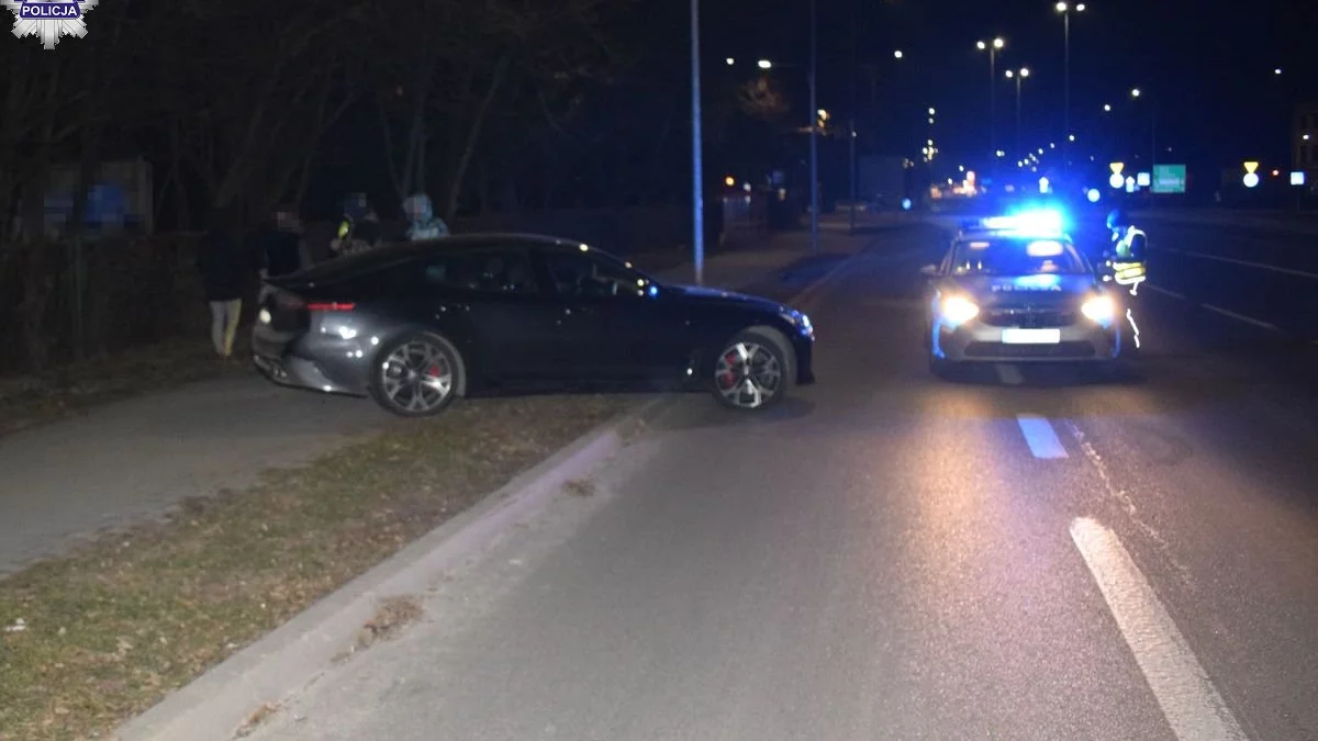 Zamojska policja przekazała, że w niedzielę w nocy na ulicy Wyszyńskiego w Zamościu 26-letni mężczyzna wykazał się skrajną nieodpowiedzialnością kierując samochodem marki Kia Stinger.
