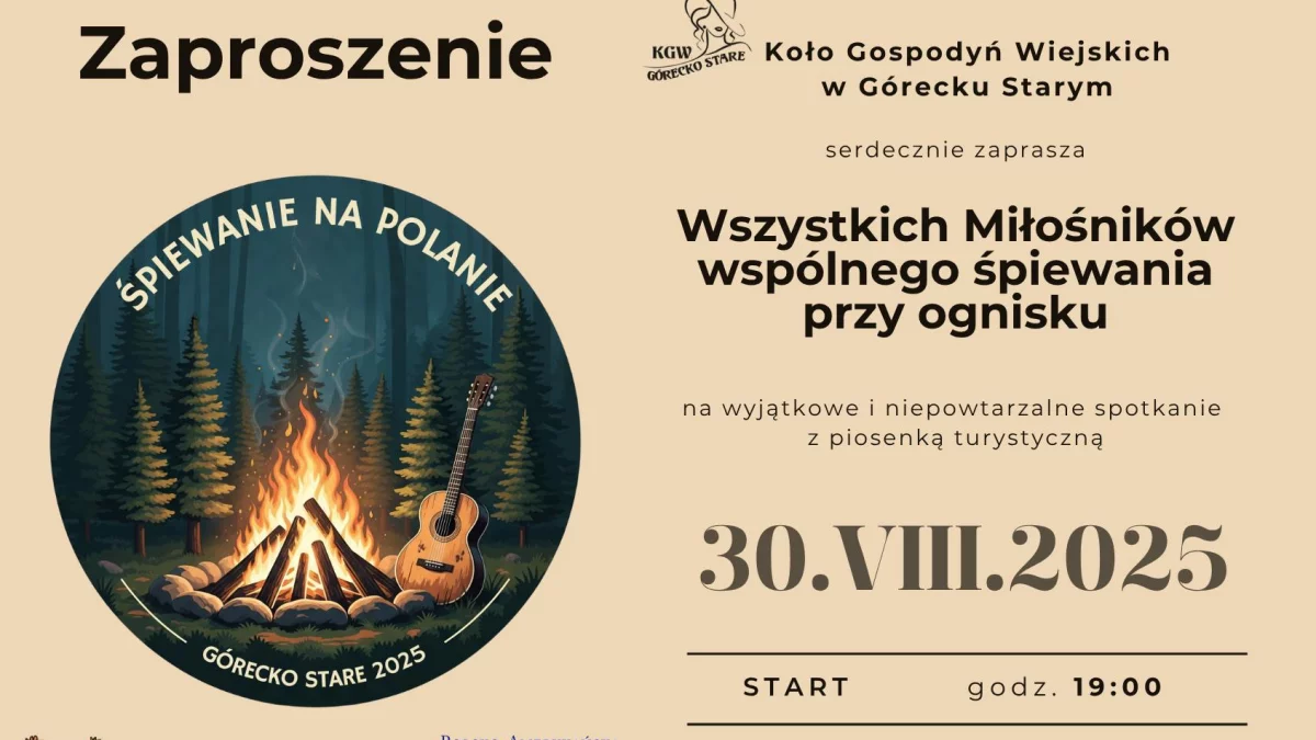 Organizatorem wydarzenia jest Koło Gospodyń Wiejskich z Górecka Starego, które zapowiada wieczór pełen atrakcji. Na uczestników czekać będą m.in. pyszne regionalne potrawy przygotowane przez zaprzyjaźnione Koła Gospodyń Wiejskich, śpiewniki (około 100 egzemplarzy na miejscu oraz wersja do pobrania online), pamiątkowe przypinki oraz specjalna księga pamiątkowa, do której każdy będzie mógł się wpisać. Nie zabraknie też nowoczesnych akcentów – przy punkcie informacyjnym znajdzie się kod QR, dzięki któremu uczestnicy będą mogli przesyłać swoje zdjęcia z wydarzenia.
