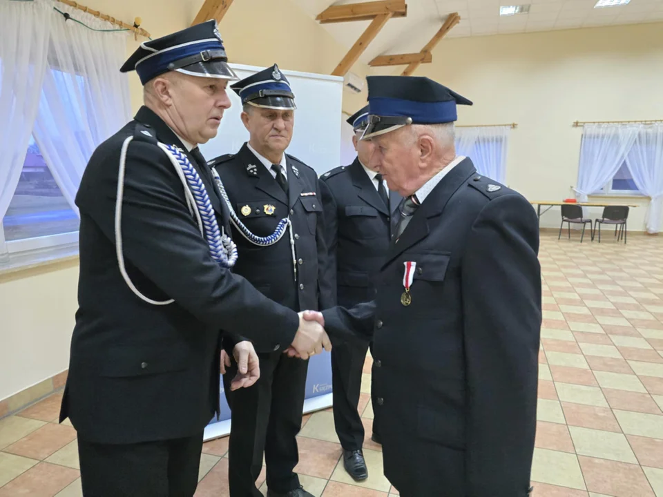 Złotym medalem za zasługi dla pożarnictwa został odznaczony druh Ryszard Popowicz, który od wielu lat aktywnie działa na rzecz jednostki, angażując się w akcje ratowniczo-gaśnicze oraz działalność społeczną. Srebrny medal przyznano druhowi Andrzejowi Kryniowi, wyróżniającemu się zaangażowaniem i oddaniem w realizację działań prewencyjnych i edukacyjnych. Brązowy medal trafił do druha Marka Blicharza, który swoją postawą i gotowością do niesienia pomocy zasłużył na uznanie.