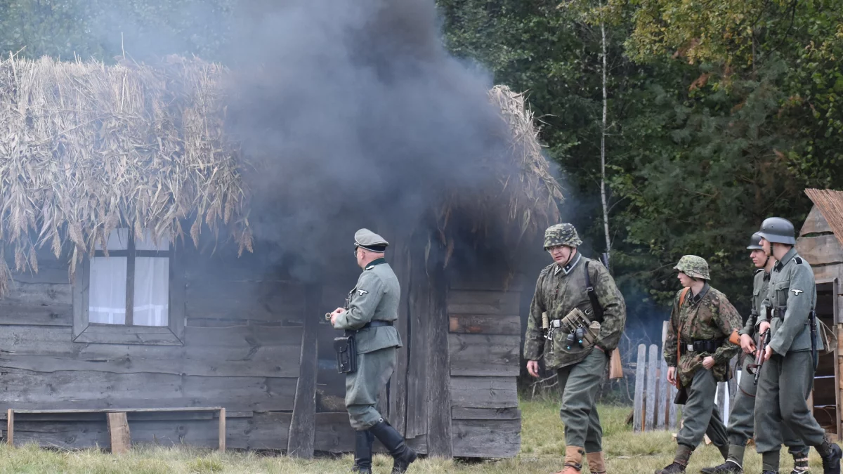 Rekonstruktorzy w realistyczny sposób odtworzyli wydarzenia 3 lipca 1943 roku, kiedy to Niemcy przeszukiwali domy mieszkańców Majdanu i podpalali je. Mieszkańców spędzano do sadu Jana Blicharza, a następnie na łąkę, gdzie podzielono ich na dwie grupy: mężczyzn i kobiety z dziećmi. Mężczyzn związano szyje grubym sznurem i rozstrzelano ogniem z karabinów maszynowych. Po wymordowaniu mężczyzn Niemcy rozkazali kobietom i dzieciom uklęknąć, po czym również je rozstrzelano.Pacyfikację przeżyły tylko cztery osoby Katarzyna Rybak, Agnieszka Sarzyńska, Maria Skubis oraz Maria Zań. Gdy Niemcy odjechali Maria Zań i Maria Skubis uciekły przez pole żyta do lasu. Z kolei ciężko ranne Katarzyna Rybak i Agnieszka Sarzyńska otrzymały pomoc od trzech mieszkańców, którzy uciekli przed pacyfikacją - Franciszka Rymarza, Michała Sarzyńskiego i Józefa Gromadzkiego. Mężczyźni ukryli je w lesie i wezwali pomoc.