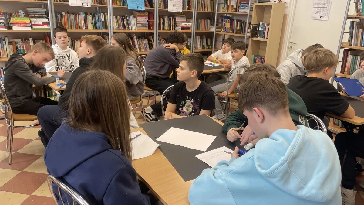W kolejnych etapach projektu młodzież pracowała w grupach nad pisaniem wierszy o tematyce zimowej. Utwory ukazywały tę porę roku z różnych perspektyw – od obserwacji przyrody po opisy zimowych aktywności. Następnie uczniowie wykonywali ilustracje do swoich tekstów w technice kolażu. Choć wszyscy pracowali na białych kartonach, powstałe prace wyróżniały się dużą różnorodnością i oryginalnością.