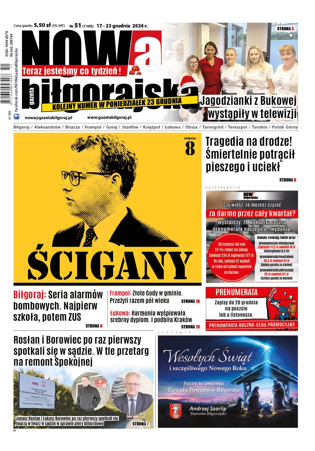Najnowsza Nowa Gazeta Biłgorajska (17 grudnia 2024 r.). Wydanie z kalendarzem na 2025 r.