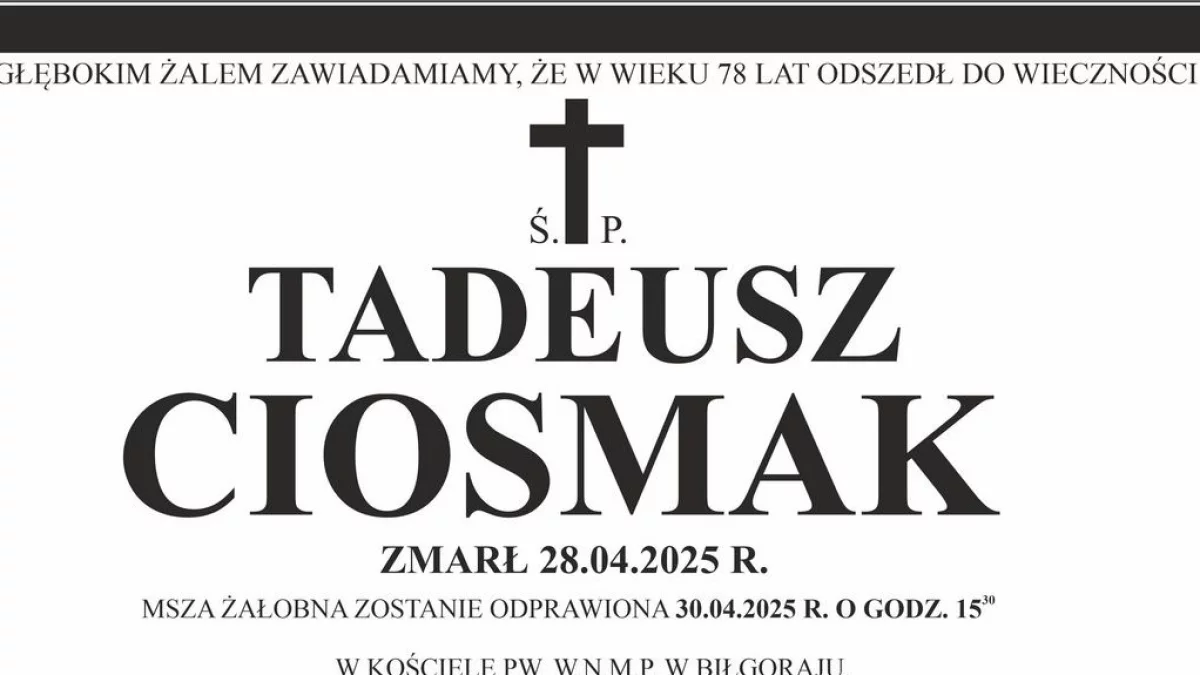 ZmarliNa łamach Nowej Gazety Biłgorajskiej żegnamy zmarłych mieszkańców Ziemi Biłgorajskiej